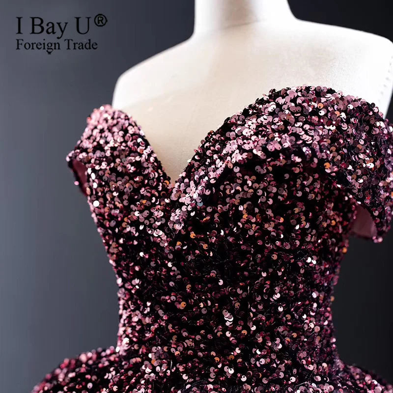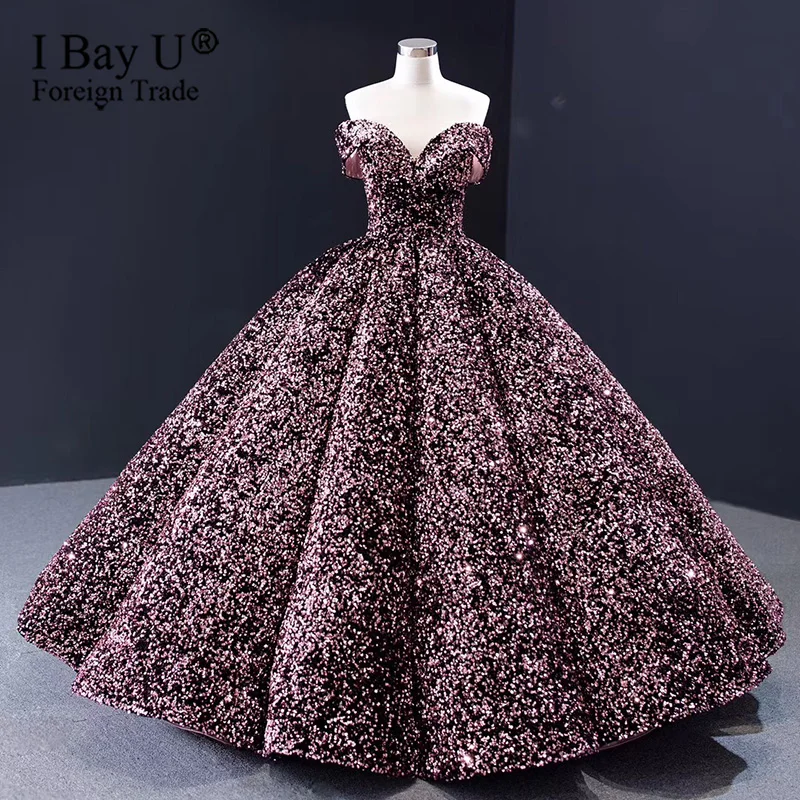 Hot Sale Pink Purple Sequined Off Shoulder Prom Dresses Dubai Muslim Arabic Prom Gowns Evening Dress Vestido