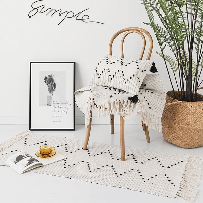HOT Sale 100% Natural Fiber Cotton Hand Woven Rugs with Non-Slip Pads Flat Weave Tufted Tassel Fringe Washab